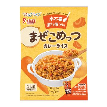 【まぜごはんのもと】野菜(にんじん(国産)、たまねぎ)、オニオンペースト、ビーフエキス、小麦粉、砂糖、ビーフオイル、カレー粉、食塩、香辛料、濃厚ソース(大豆・鶏肉・豚肉・もも・りんごを含む)/増粘剤(加工でん粉、増粘多糖類)、調味料(アミノ酸等)、着色料(カラメル色素)